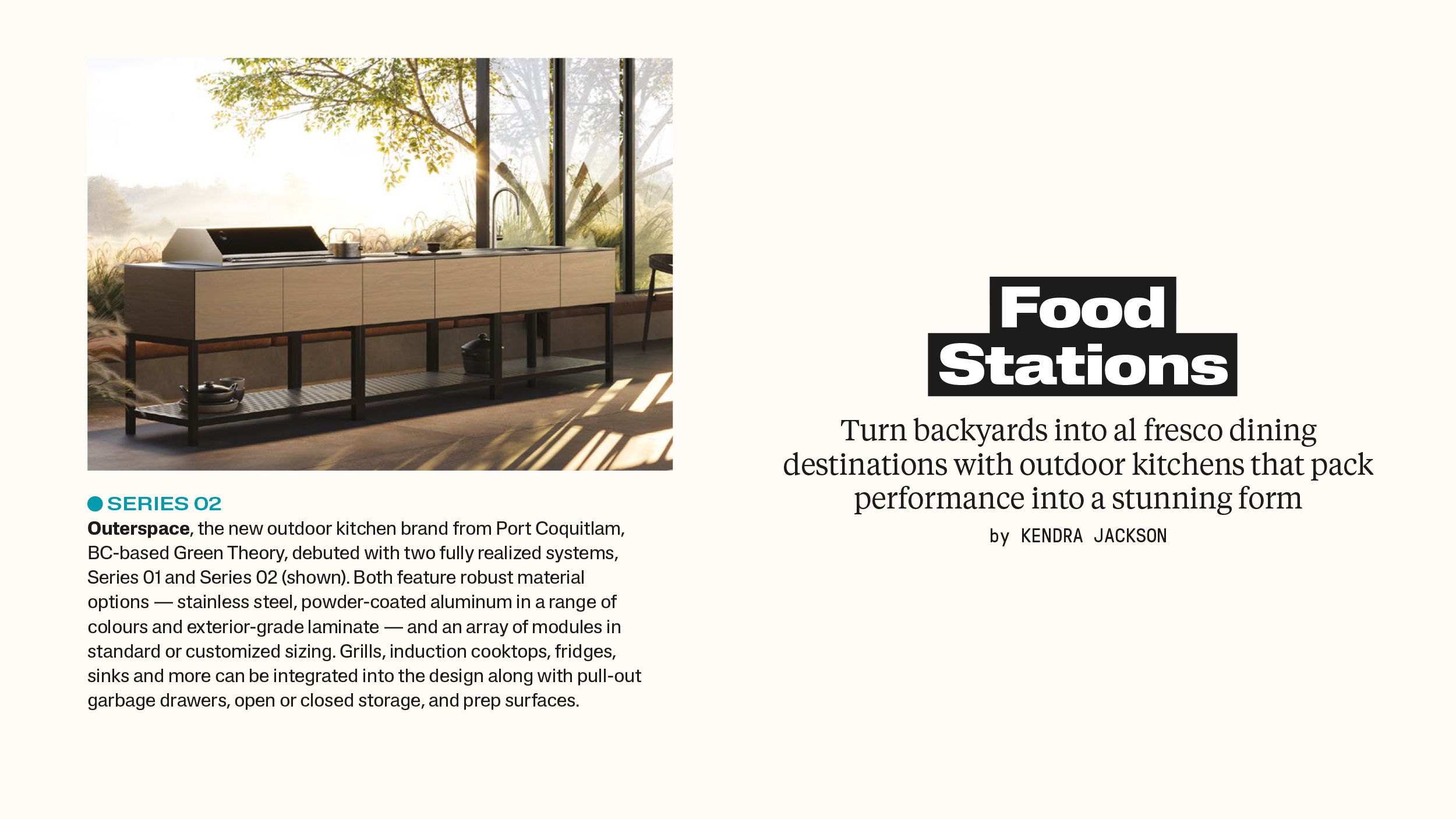 We’re pleased to share that Outerspace Outdoor Kitchens by Green Theory is featured in the November/December 2025 issue of Azure Magazine. The Kitchen Spotlight feature highlights the two modular systems that form the foundation of our Outdoor Kitchen line "Outerspace": Series 01 and Series 02.