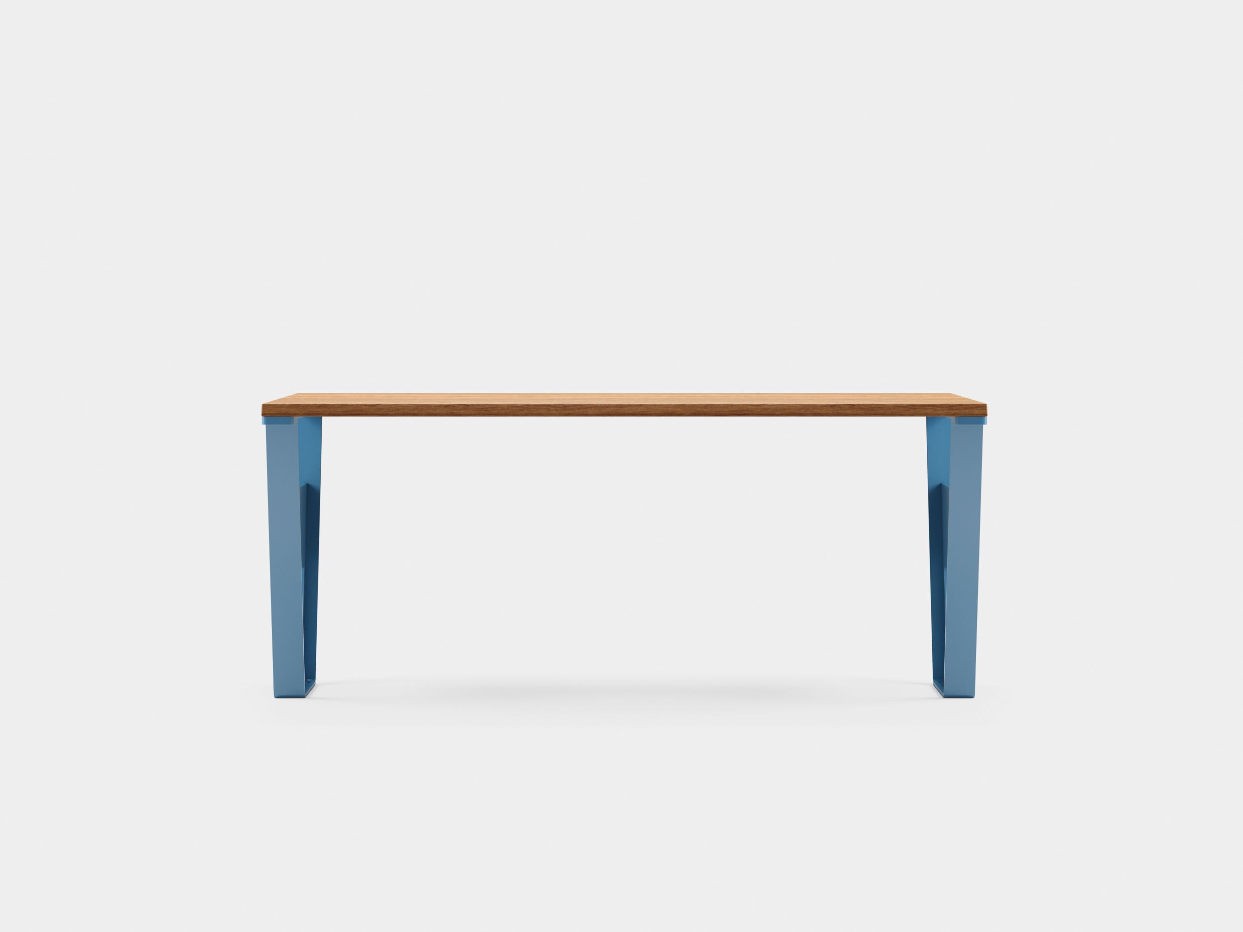 This table features a sleek, tapered frame that enables the Cruiser backless bench to fit slightly beneath the table’s edge, additionally, the outside wood slats are beveled downwards for enhanced ergonomics when resting arms on its surface.