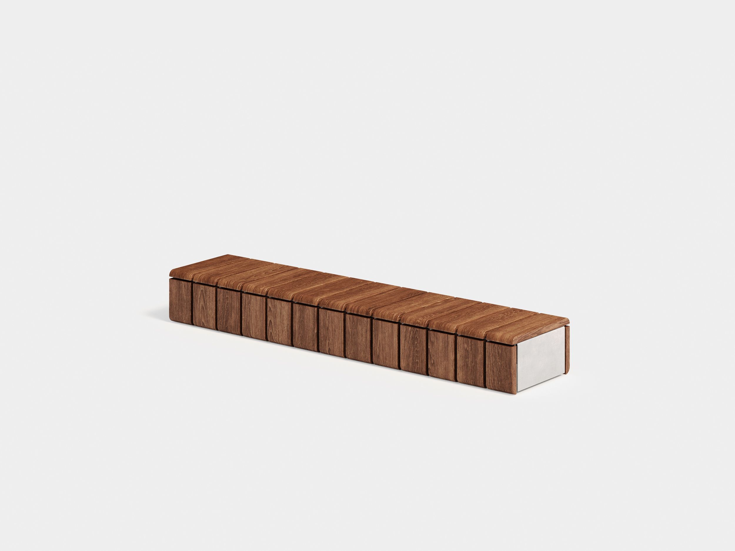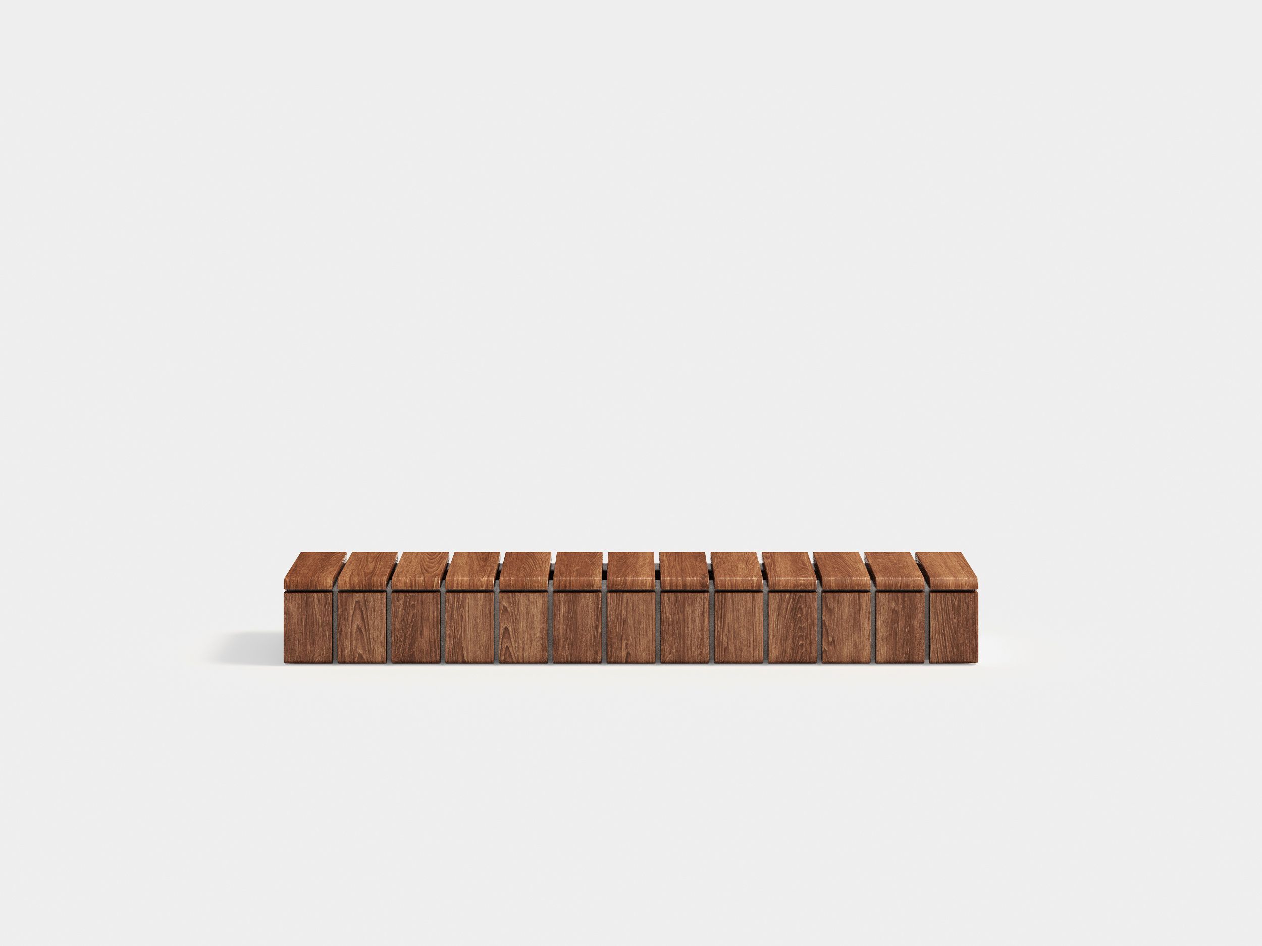 Incorporate natural wood tones into your space with the Drape timber backless bench. The wooden form anchors the seat within its environment, and provides high contrast when paired with Drape’s metal benches.