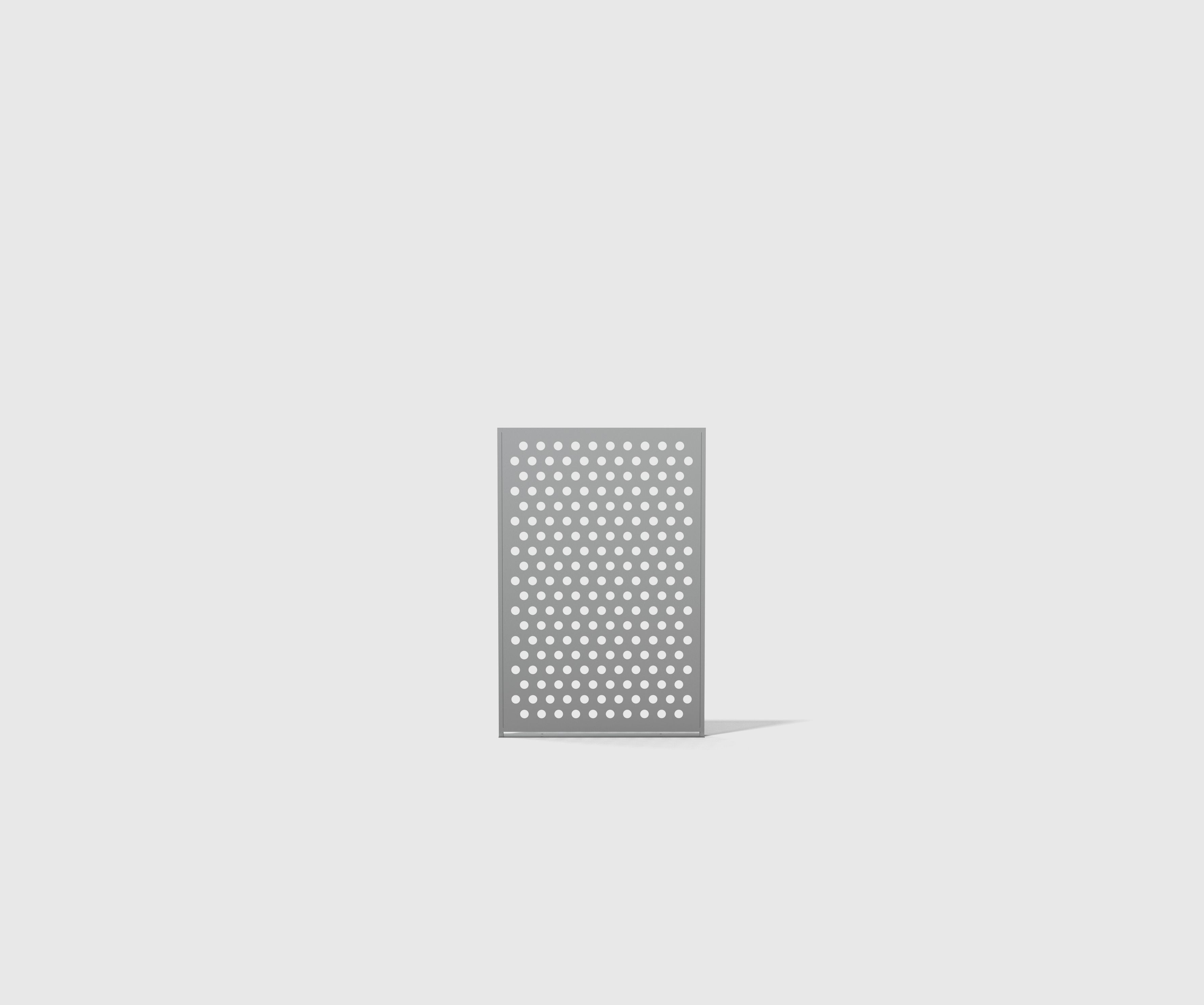 The Panel Wall is a modern take on the privacy screen. Its profile integrates a mounting plate that runs the length of a panel without interruption, producing a minimal aesthetic at the base.